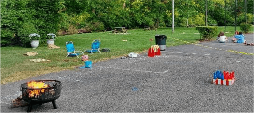 It was a very pleasant evening with existing newer members, some veteran members, and some brand-new members. With many children, there were impromptu games set up on the pavement.